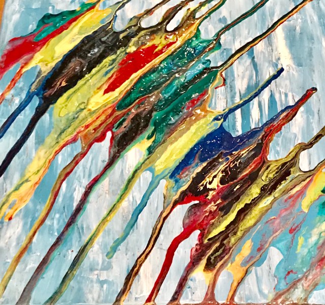 I’ve recently discovered the art of pouring paint. It’s basically acrylic paint mixed with a pouring medium and poured over canvas or wood or whatever.