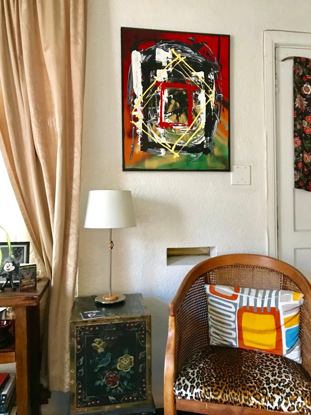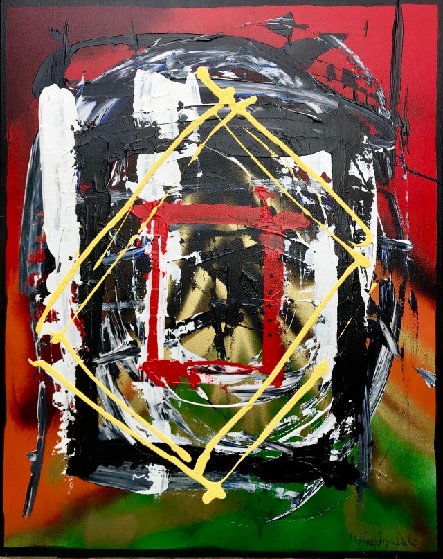Please contact me if you are interested in purchasing this 24″ x 30″ acrylic and spray paint on canvas abstract painting. I’m happy to provide additional images and information upon request.