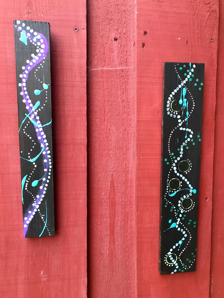 I will be hosting an Art’s and Craft Show in early October, so in addition to my fine art painting, I will be spending some time making other crafts. I have always enjoyed working with wood, (daughter of a carpenter, go figure!) so here, on these Wood Totems, I combined two of my passions, wood and painting!