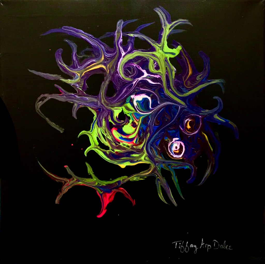 Not to be confused with the Academy award winning movie of the same name, (which I haven’t seen yet), my “Parasite” is an abstract acrylic painting that looks like a creepy parasitic creature. Apparently parasites can take on a lot of different looks, I made the unfortunate mistake of Googling images of parasites and now I probably won’t sleep for a few days. Don’t do it.