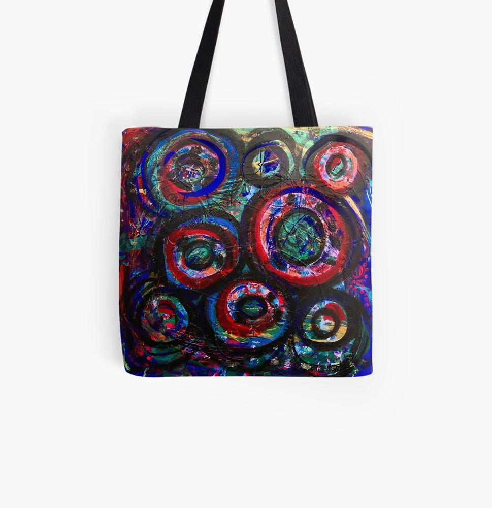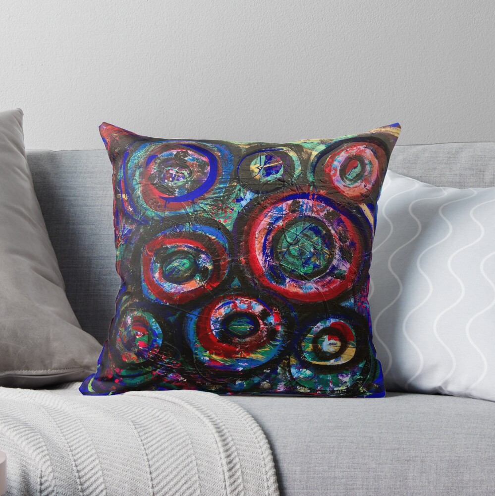 There are many layers of paint and tons of texture on this canvas. I love the way all the different colors pop in and out of the circles, you can almost sense that they are moving. Yeah, I suppose that is why I decided to call it “Doughnuts on Acid” it is pretty trippy. I did another painting a while back called “Psychedelic Breakfast”, hmmm, I might have a theme going on here!