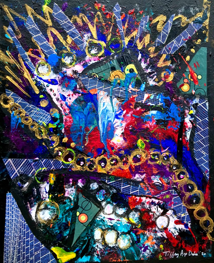 This was a fun, crazy mixed media painting that I just finished. It includes acrylic paint, magazine clippings, alcohol ink and some floetrol pouring medium.