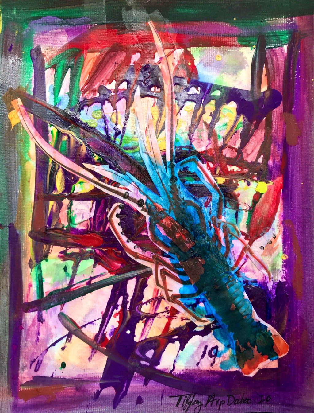 9″ x 12″ mixed media collage on watercolor paper, “Blue Lobster” is available for purchase at my Etsy shop, click here for details!