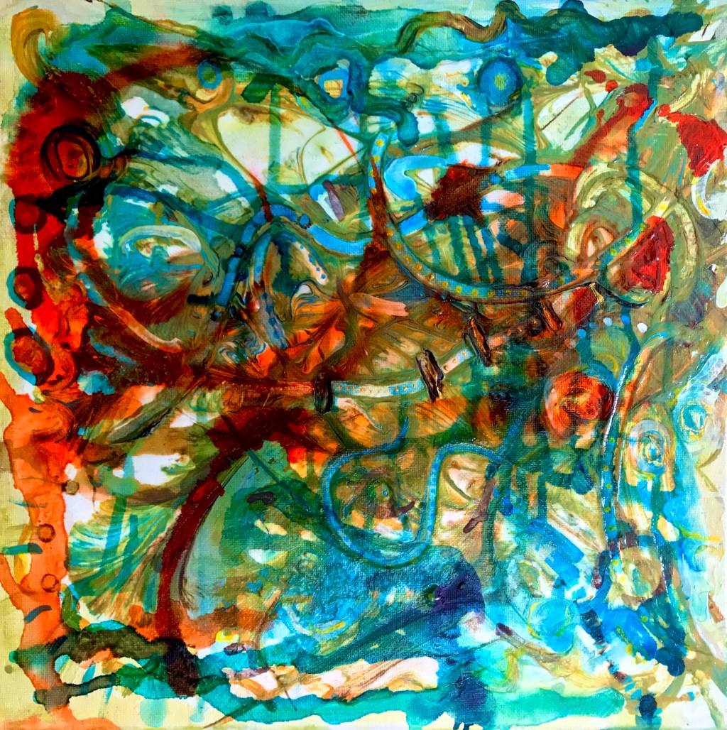I just love that quote, and I love this painting too. It’s a lovely abstract painting created with acrylic, watercolor, and alcohol ink. It began as an experiment using a chain to pull the paint around, inspired by this video, which was really fun, I will share more on that later!