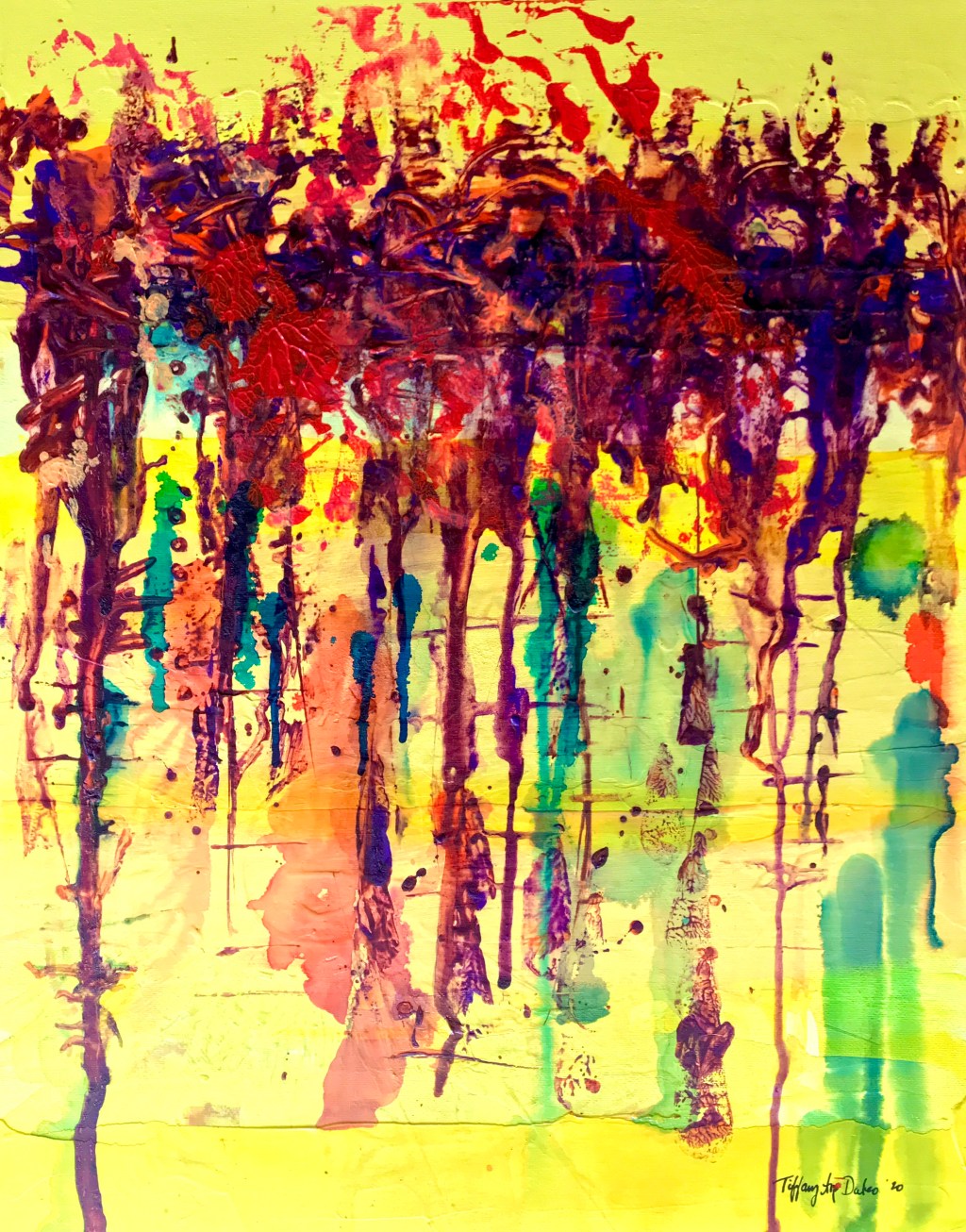 I have to confess this painting was supposed to be something else. It was originally the “All-Yellow” painting in my color series. But sure enough, whenever I set out to paint something specific, I get too fixated, I over work it and I’m never happy with the outcome. So, it became something else.Β