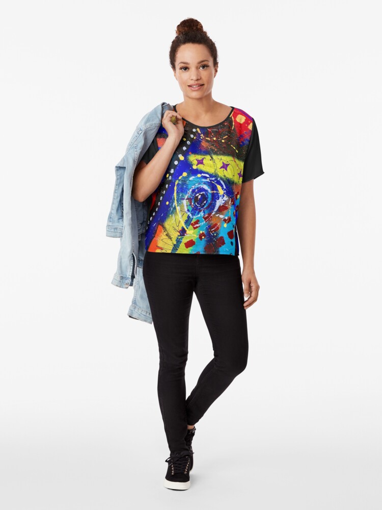 Mixed media on canvas, this painting includes spray paint, tissue paper, and a lot of acrylic paint that creates texture. “The New Rodeo” is full of energy and life, draw from it when needed to help keep your spirits up!