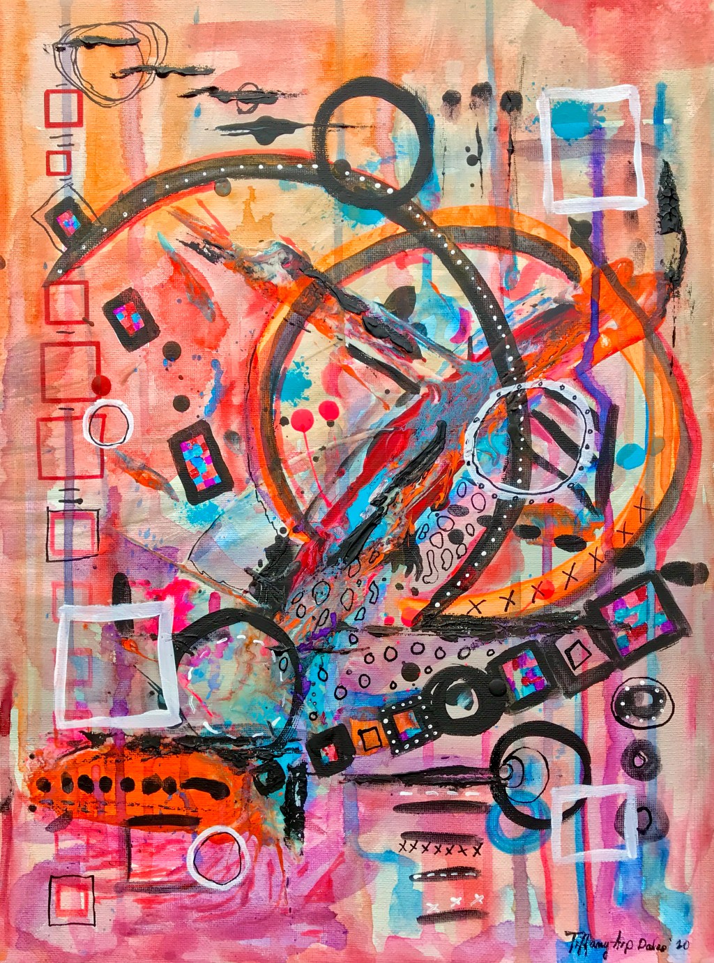 Water color, acrylic, markers, pen and pouring medium, all went into creating this “Concoction”. I’m pleased with the overall appearance, even if it makes no sense, it’s not supposed to!