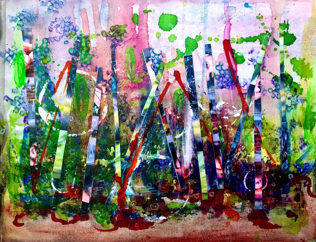“Growing” includes strips of one of those flyers, actually, it was my first public show several years ago that I did with my dear friend Xavier Bailey, an amazing photographer. I have grown and learned so much since that first show! If you look closely, you can see parts of our faces, Lol!