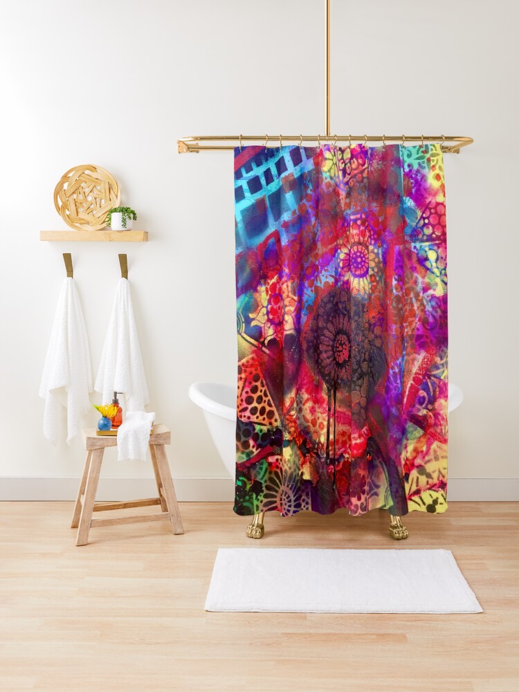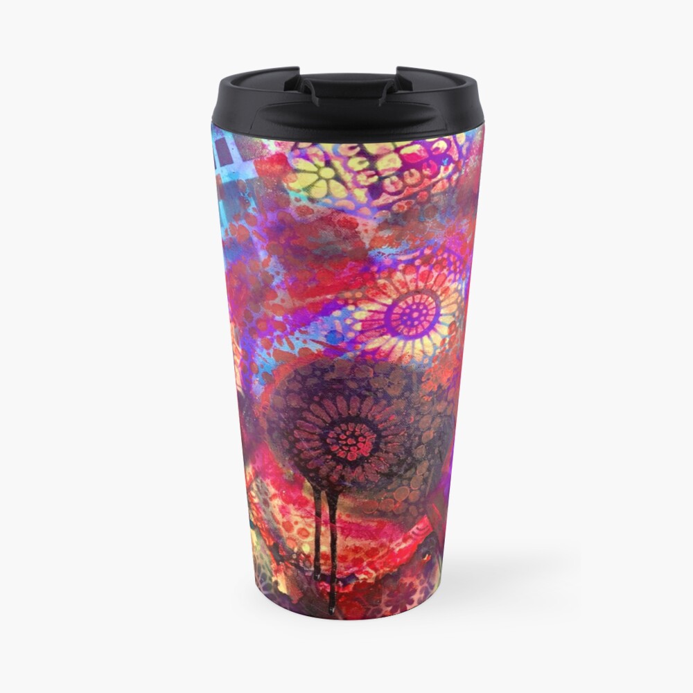 This painting is covering another painting I did last year that I just didn’t love, so I painted over it. Beginning with spray paint and some stencils, I then added some swipes of acrylic, and finally felt it was complete with some a lot of alcohol ink splashed around. I do love the final piece, the colors, the mandalas, the mystery!