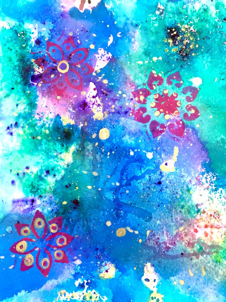 I’ve only played with the crystals in a few applications, I really love the bright colors and how unpredictively they blend. So far, I’ve used them on watercolor paper, my mixed media sketchbook, and even on canvas, it’s pretty versitile. I have some more fun ideas to try, so stay tuned for more experiements soon!