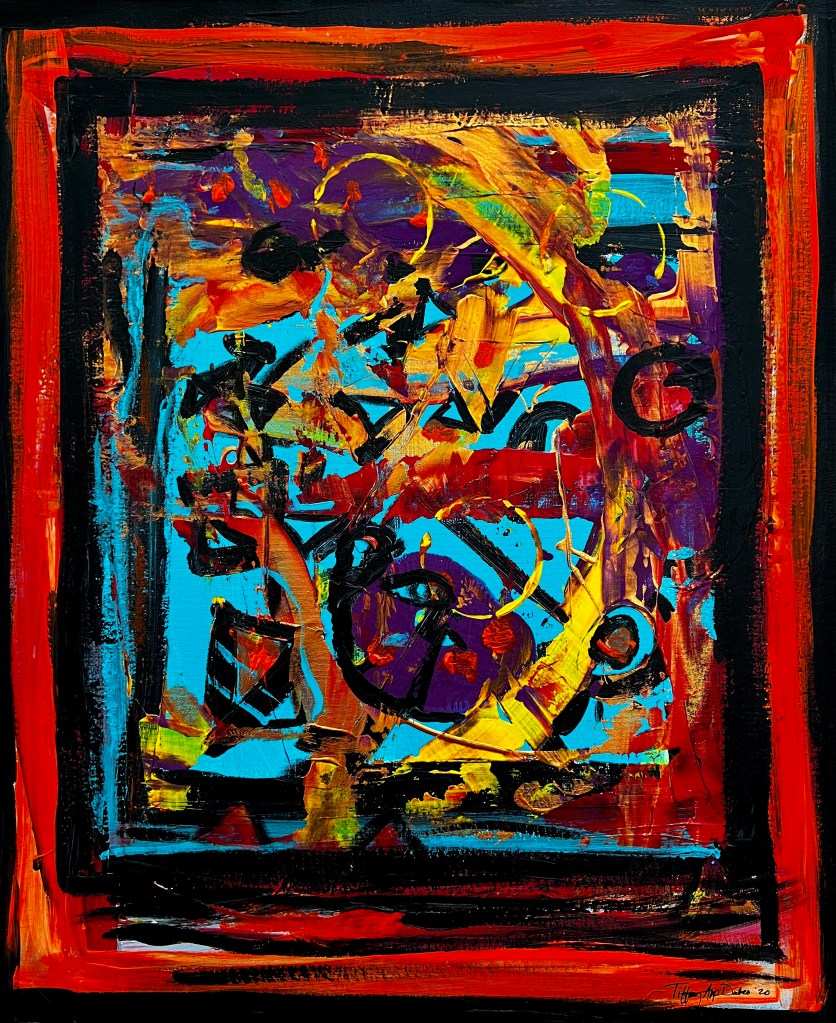 There’s some great color combinations and lots of gold, I like the loose strokes, and thick textures. I don’t know if I gave it a different name in 2020, but today I am calling it “Fragmented Elements”, it has some kind of alchemist feeling to it.