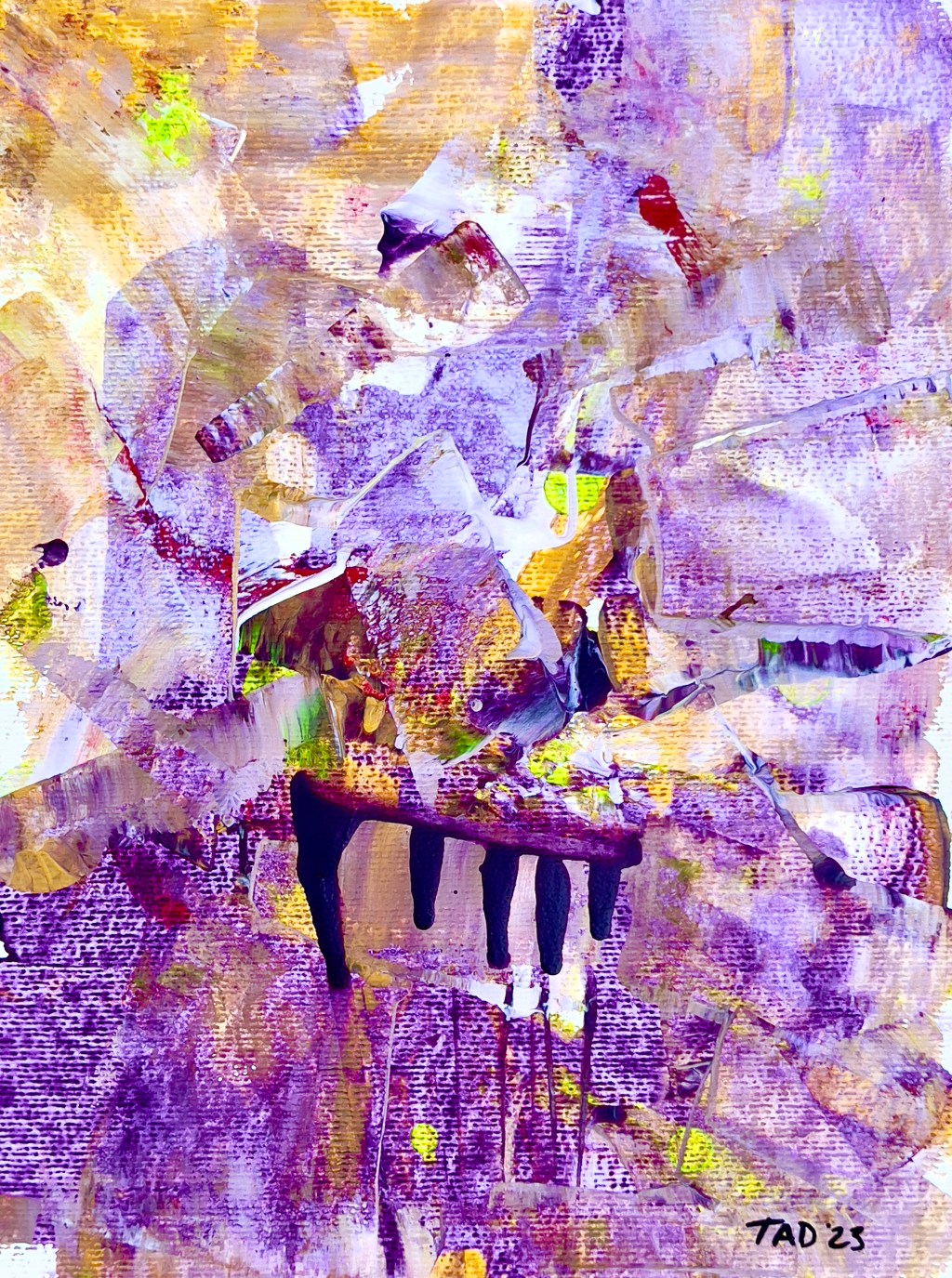 As a kid growing up in the ’80s, I was greatly influenced by the ‘New-Romantic’ music artists like Visage, Spandau Ballet, The Psychedelic Furs, and Soft Cell. This abstract acrylic painting totally reminds me of the music from those days!