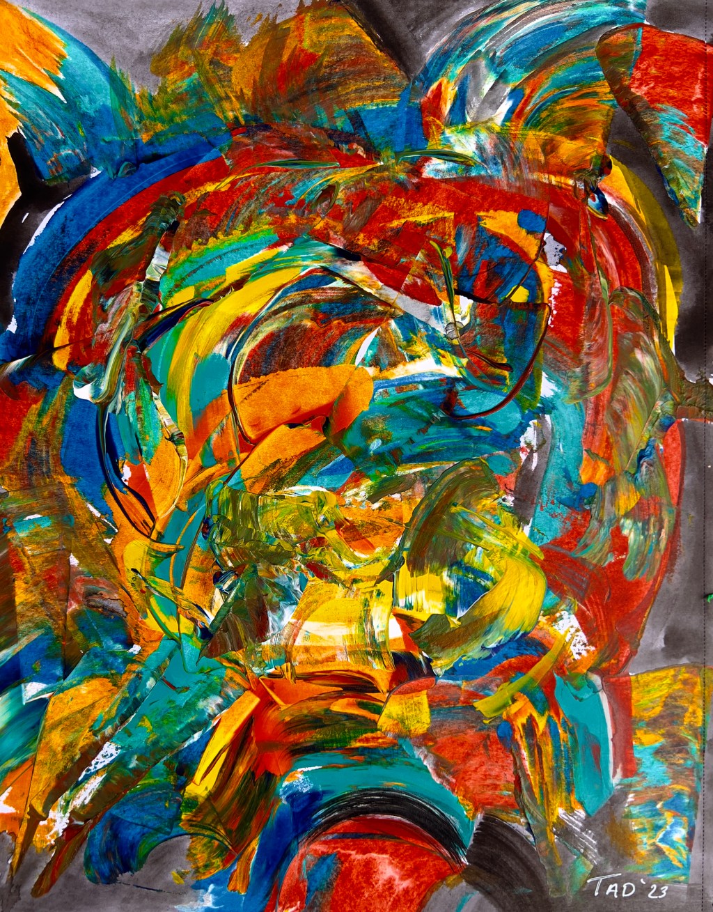 My favorite painting technique lately is with a knife or with the edge of a credit card. I’m seeing depth and texture, that fractal effect that seems intentional, yet it’s still abstract.
