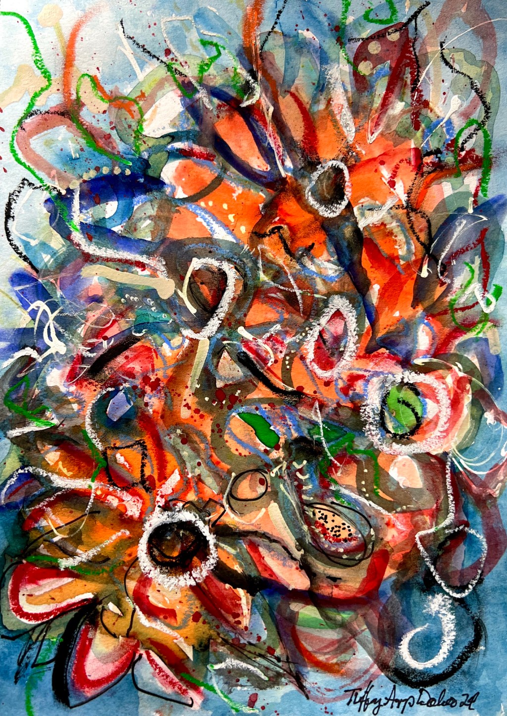 Sometimes you just have to let loose, let your imagination run, and let all those pent-up feelings and emotions take over, get it all out. Sometimes, the outcome takes shape in the form of a painting.