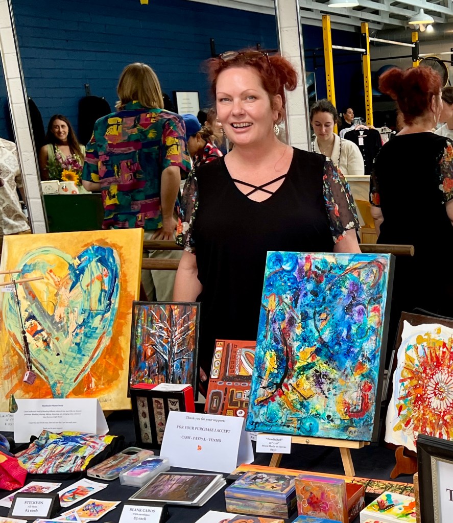 The organizers did a great job choosing the vendors, there was a good mix, I was the only abstract artist among ceramic, crochet, jewelry, and pet product sellers, I noticed the second hand clothing vendors did very well.