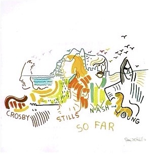 When I asked my husband what he thought about this painting, he immediately said “So Far”. I had to look it up, it’s the album cover Crosby Stills Nash and Young put out in 1974.