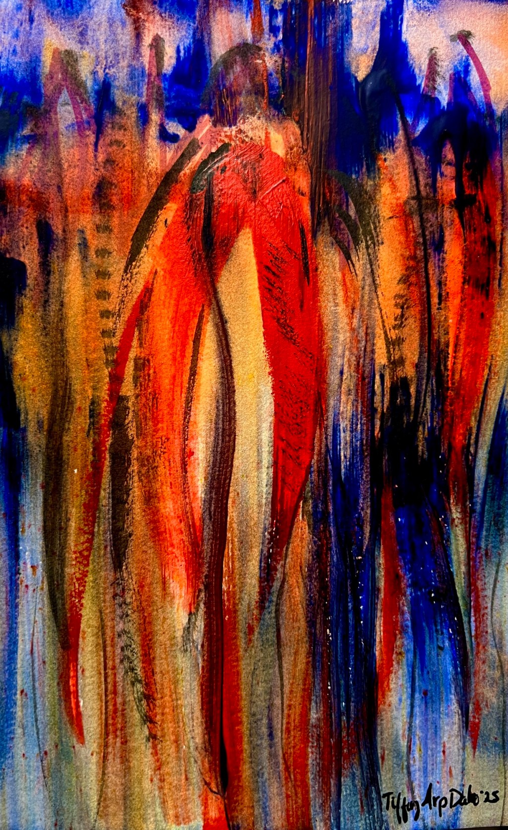 Channeling my protective spirits, I created this painting with acrylic, gouache and Brusho Crystals.