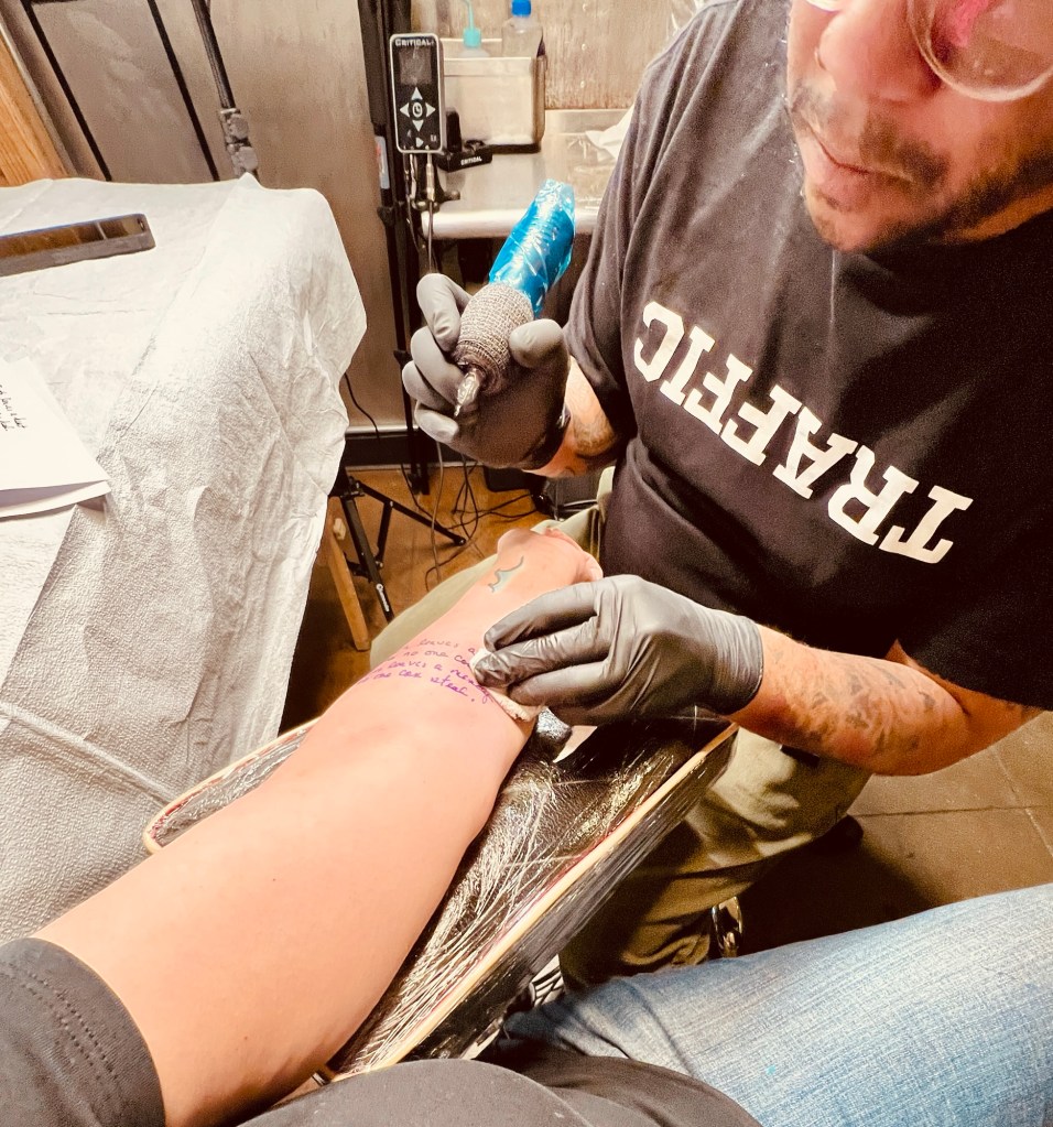 It took some effort to find someone who was willing to do the tattoo on the specific date, and someone who could do the lettering exactly in her handwriting. I found my guy at Seventh Serpent Tattoo, and I couldn’t be happier with the final tattoo, he nailed it. 😊